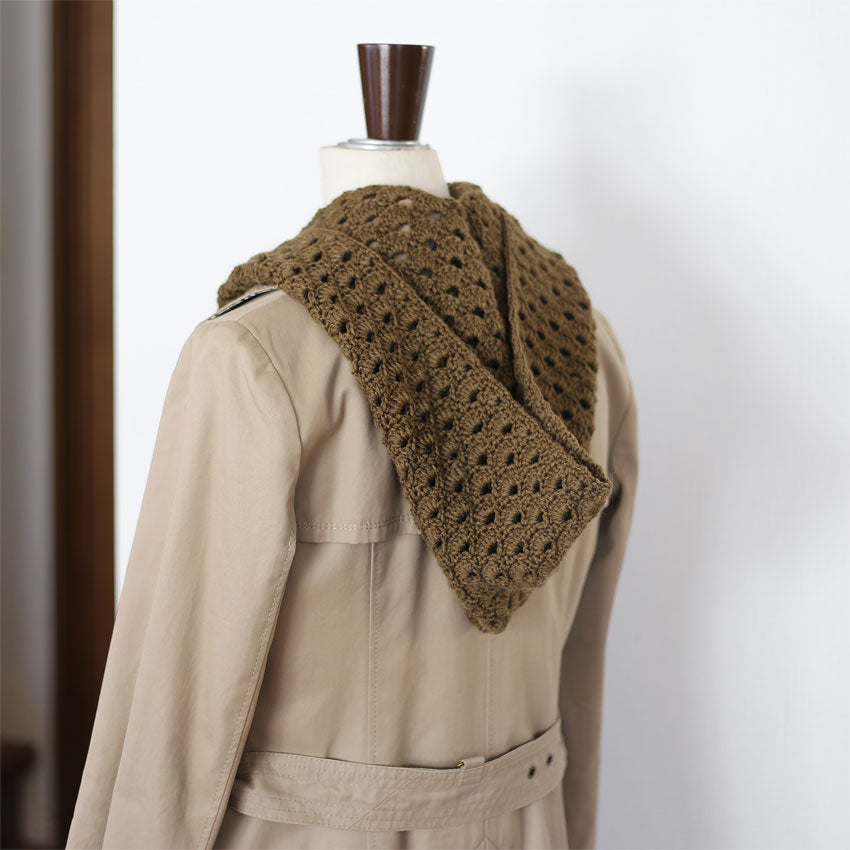 ⑤ Ronique(ロニーク)さん 本格デザインのフード付きマフラー(有料編み図)
