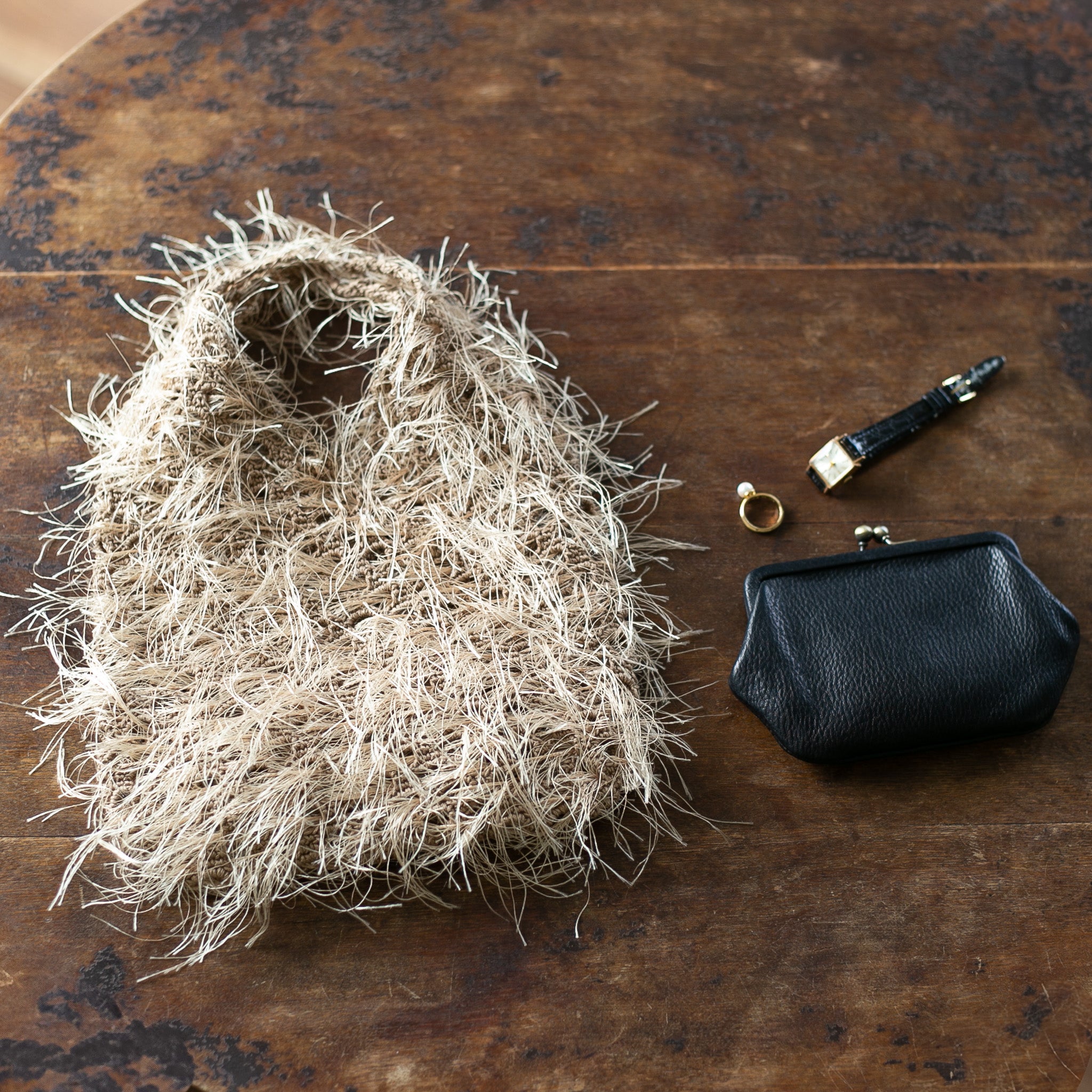 糸自体がしっとり柔らかく、編むとしっかり厚みが出てくれるため、ふんわり存在感のあるバッグに仕上がります。
